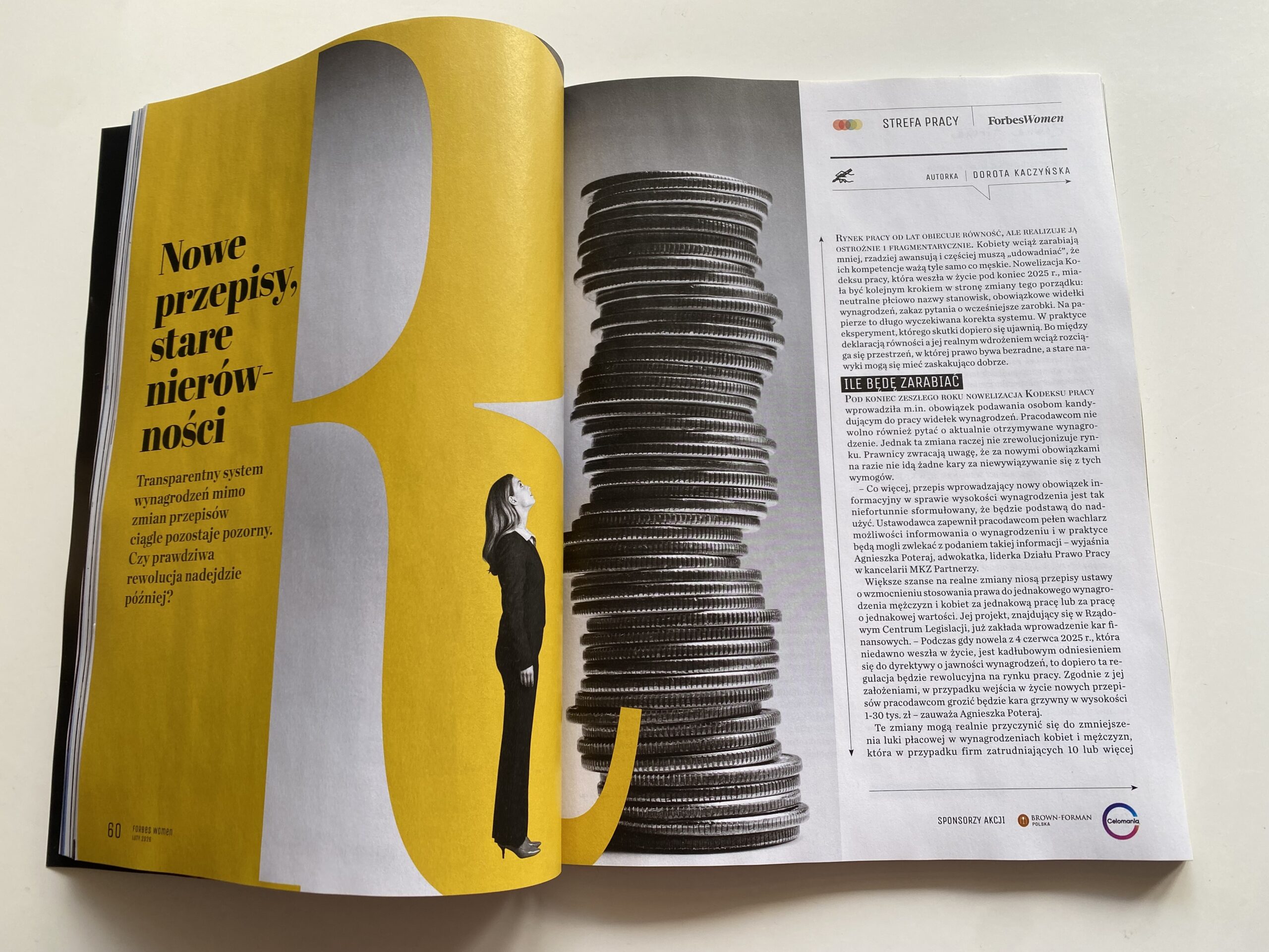 W najnowszym numerze Forbes Women Polska ukazał się artykuł Doroty Kaczyńskiej-Majeran „Nowe przepisy, stare nierówności”, poświęcony wpływowi zmian w prawie pracy na lukę płacową w Polsce. Publikacja podejmuje jedno z kluczowych wyzwań współczesnego rynku pracy: czy nowelizacja Kodeksu pracy oraz planowane regulacje rzeczywiście przyczynią się do zmniejszenia nierówności wynagrodzeń kobiet i mężczyzn.