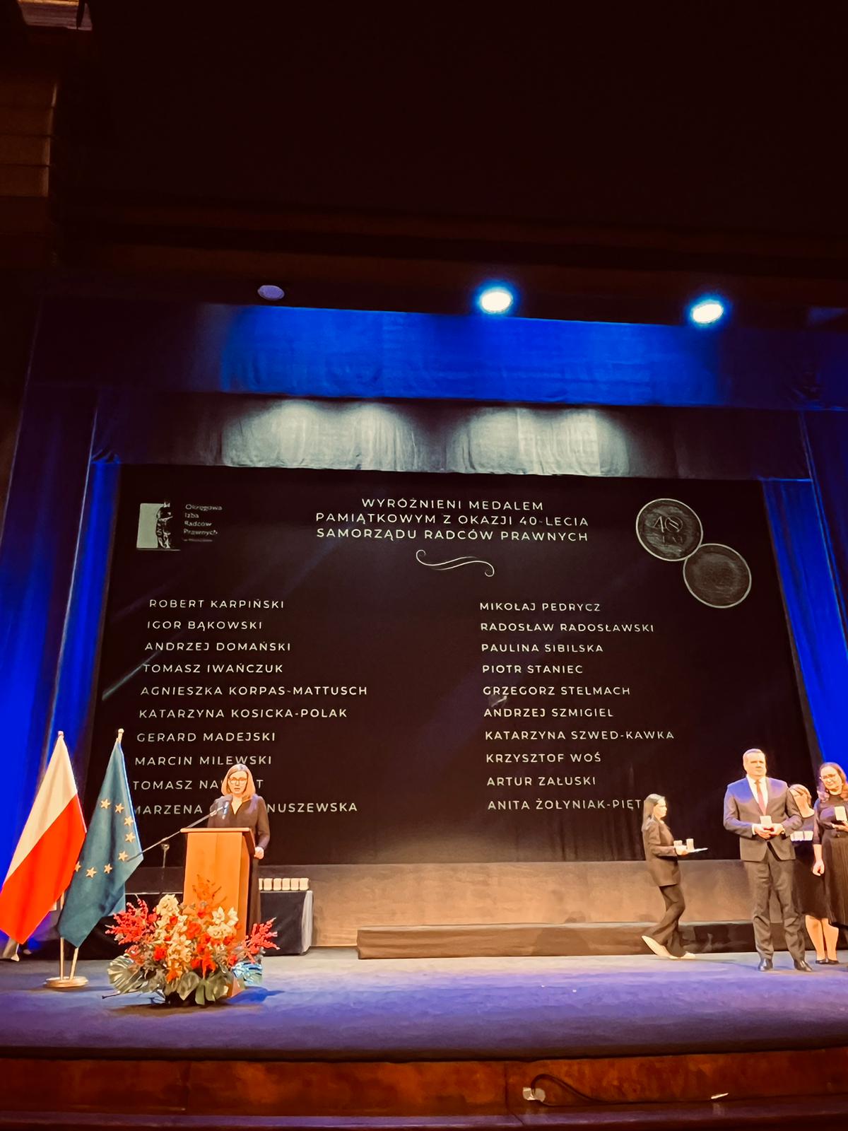 W poniedziałek 19 grudnia podczas spotkania świątecznego Okręgowej Izby Radców Prawnych w Warszawie radca prawny Katarzyna Kosicka-Polak, wspólnik zarządzający MKZ Partnerzy została uhonorowana medalem pamiątkowym z okazji 40-lecia samorządu zawodowego.